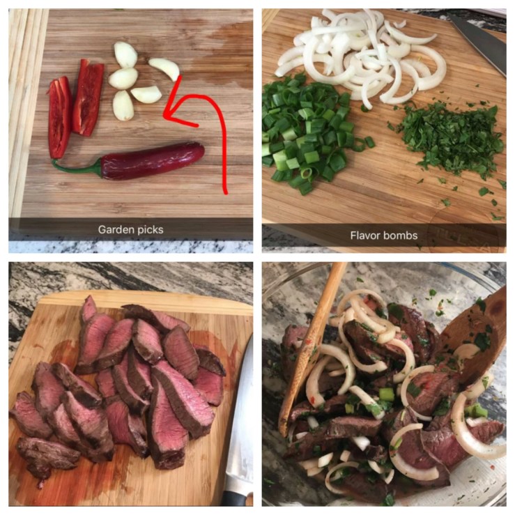 Potatoes and okra both done in the air fryer. I did the potatoes first, since they take more time and retain heat. The okra fried in a flash! This kept my oven space free for the filet mignon.